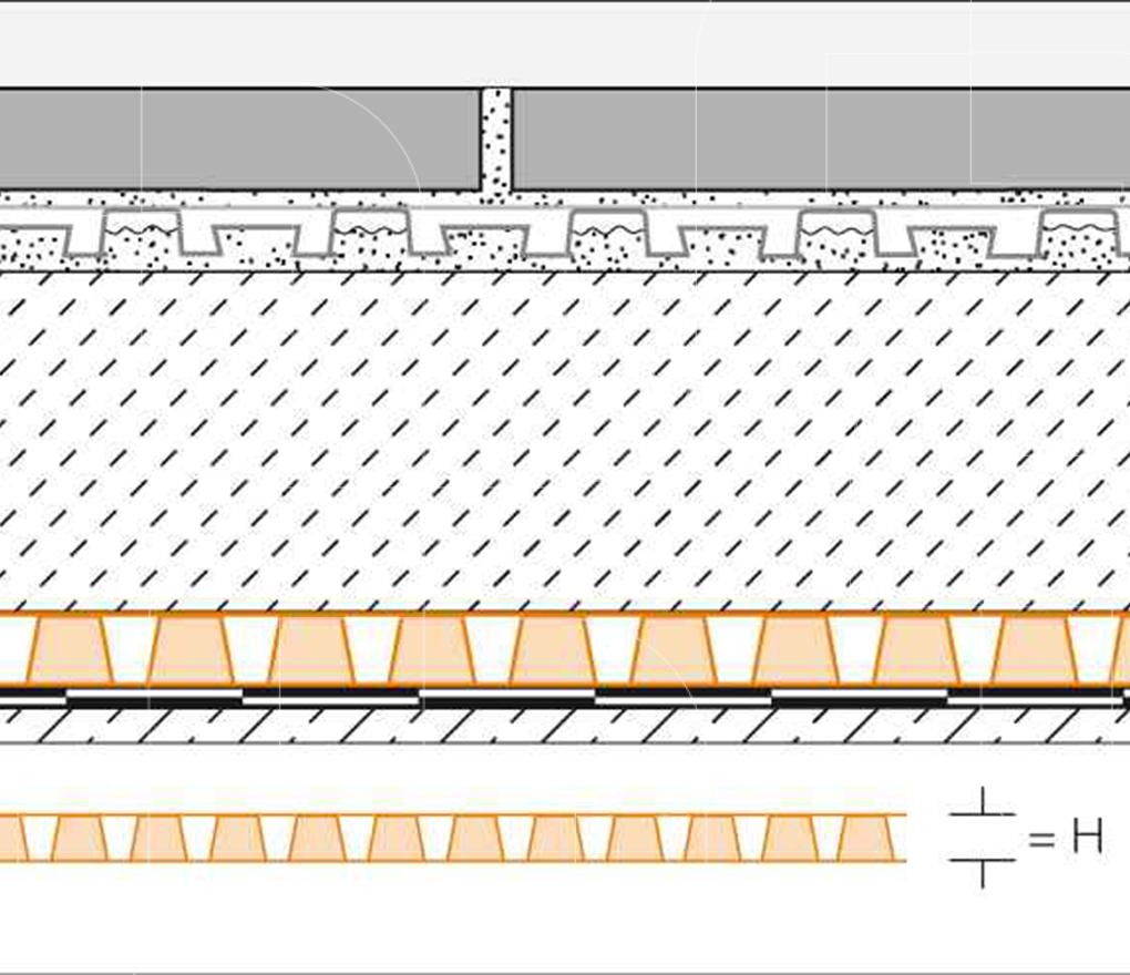 De open ruimte tussen de noppenbaan en het filtervlies/gaas vormt een warmte- en contactgeluid isolerende luchtlaag die de afdichting extra beschermt tegen schadelijke thermische belastingen. Hierdoor wordt een gelijkmatige en vlakke spreiding van de belasting boven de afdichting verkregen.