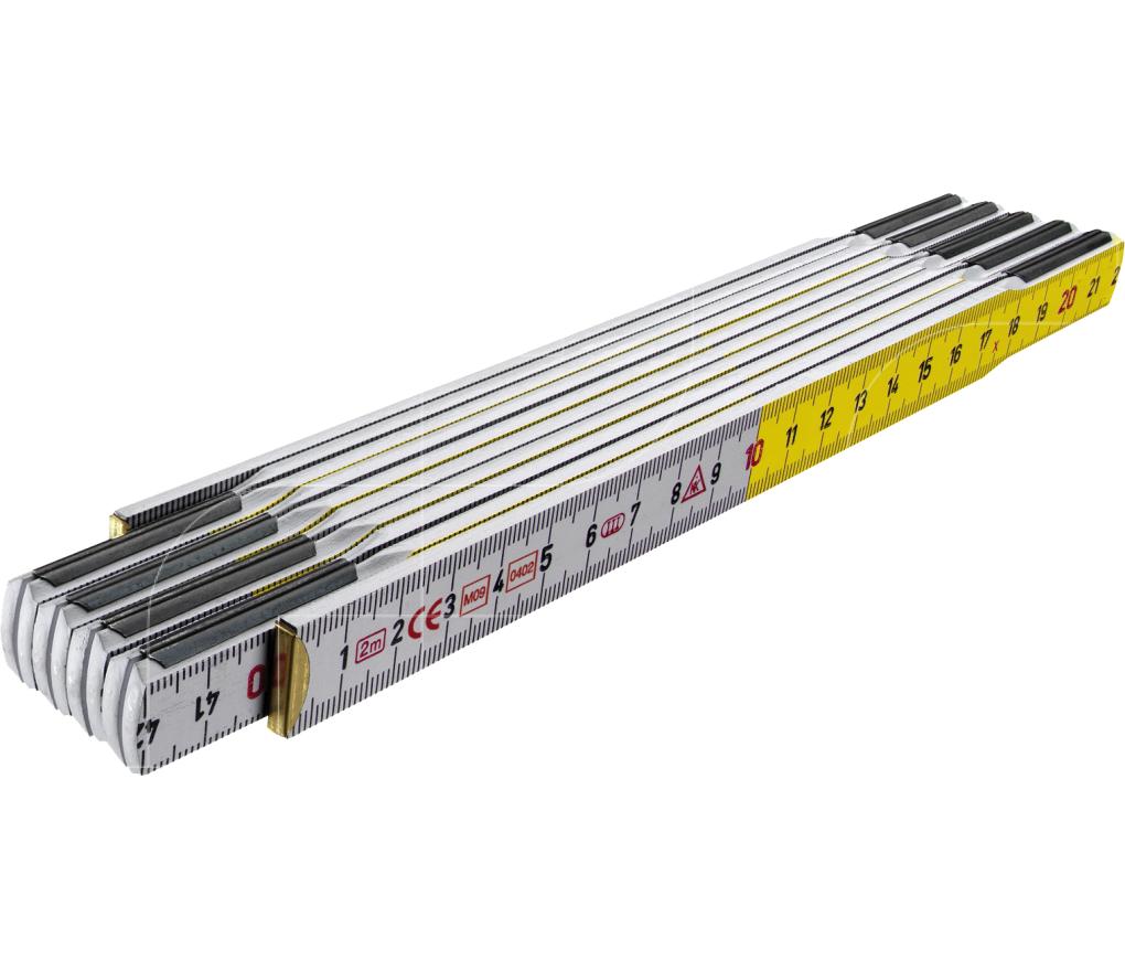 Vouwmeter wit/geel van berkenhout en scharnieren van Zweeds staal 2m x 17 mm