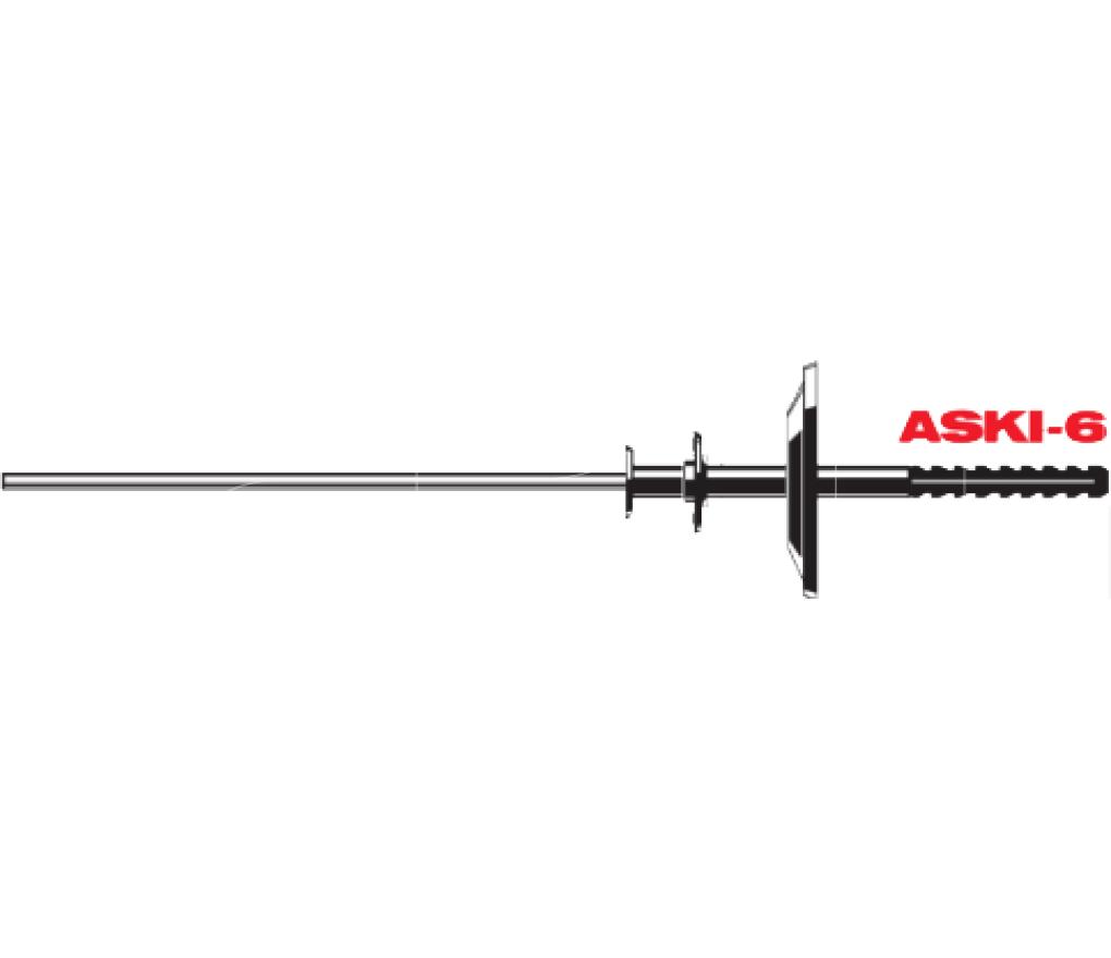 ASKI verankert het breukstenen of bakstenen gevelbekleding in het dragend binnenspouwblad. Perst de isolatie stevig tegen het binnenspouwblad en voorkomt warmtebruggen.