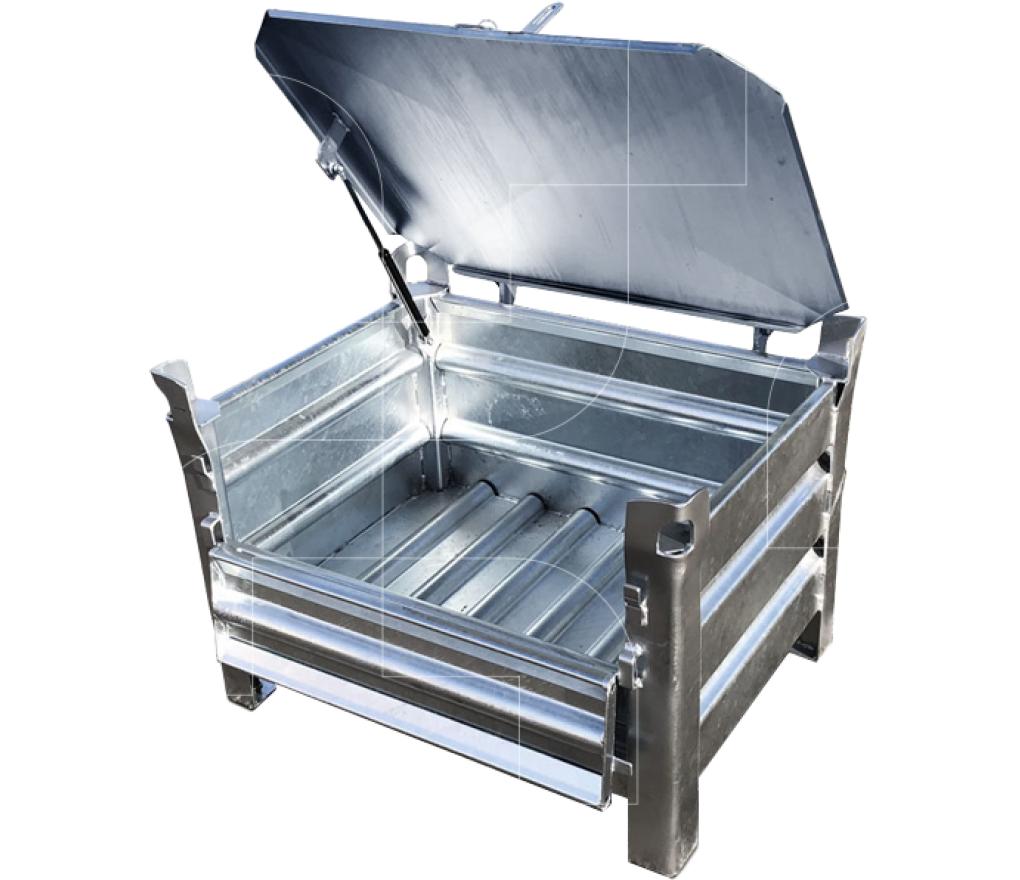 Verzinkte stapel- en kraancontainer ideaal als transport- en opslagcontainer van/naar en op de werven.