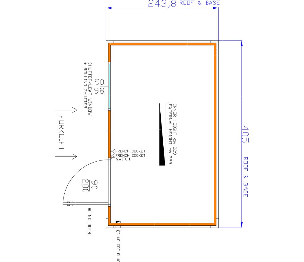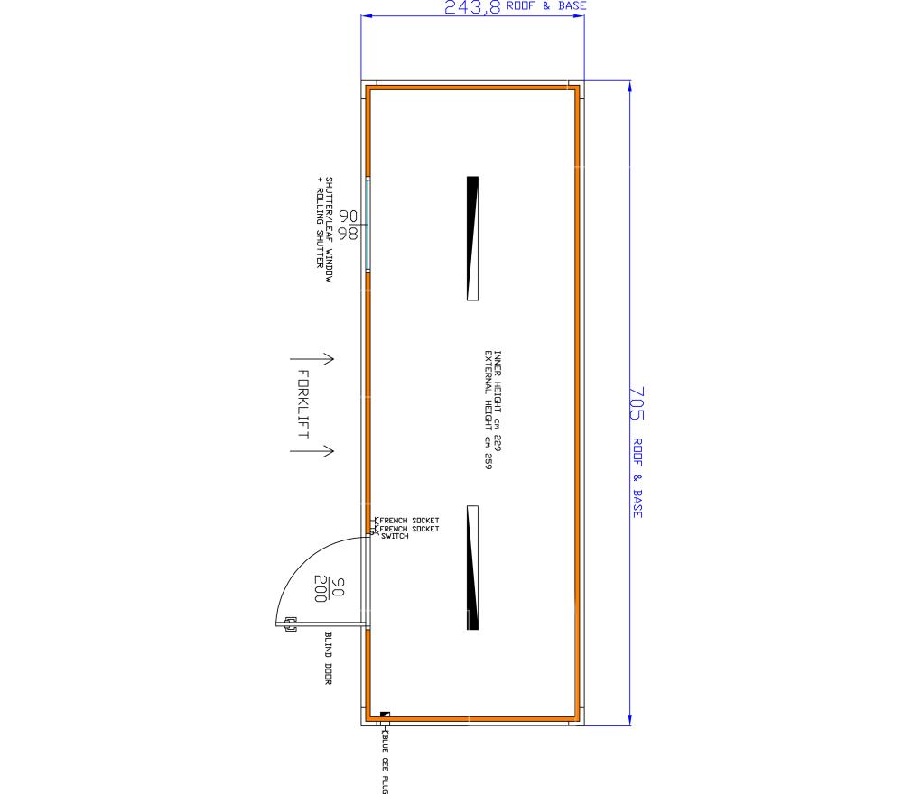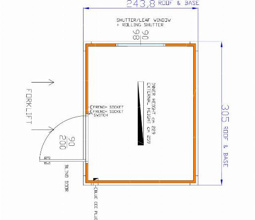 Standaard uitgerust met een deur (aluminium) en draai-kiepramen met rolluiken. Eveneens voorzien van vorkheftruckuitsparingen, elektriciteit en verlichting.
