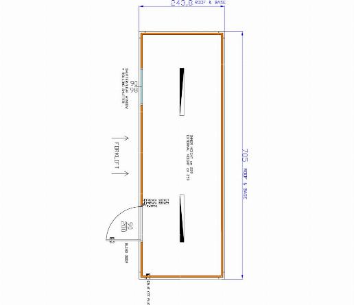 Standaard uitgerust met een deur (aluminium) en draai-kiepramen met rolluiken. Eveneens voorzien van vorkheftruckuitsparingen, elektriciteit en verlichting.