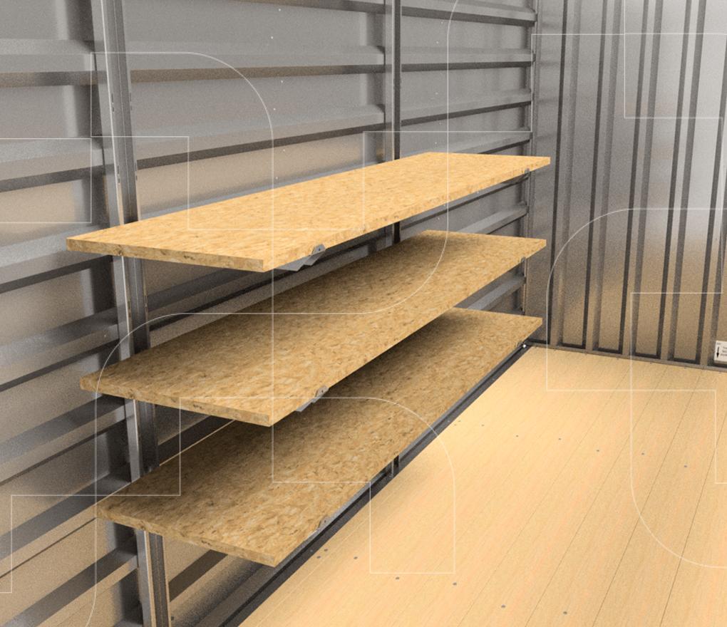 Staander per lopende meter, bedoeld om schabben in container te monteren.