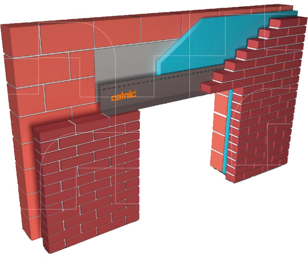 - Toegepast voor metselwerkopvang ter hoogte van raam- en deuropeningen. Wordt niet verankerd aan de achterliggende structuur, en veroorzaakt bijgevolg ook geen koudebruggen.
