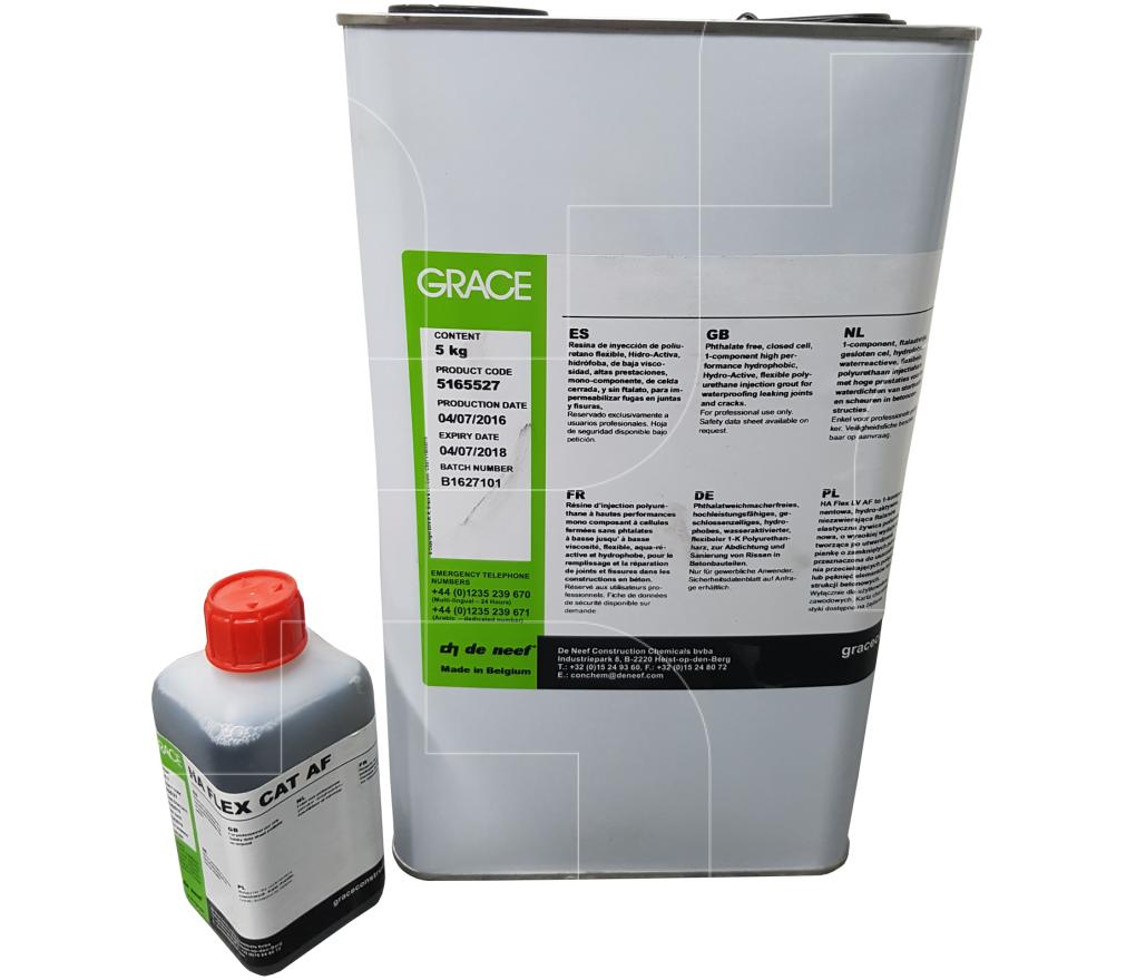 Ongereageerd is HA Flex LV AF een gele, niet-ontvlambare vloeistof zonder ftalaatweekmakers. HA Flex LV AF zijn 1-component injectieharsen van de volgende generatie met verbeterde waterdichtende eigenschappen. In contact met water zal het hars uitzetten en snel (afhankelijk van de temperatuur en de gebruikte hoeveelheid HA Flex Cat AF) uitharden tot een stevig, flexibel, polyurethaanschuim met gesloten celstructuur dat in het algemeen inert is voor corrosieve omgevingen.