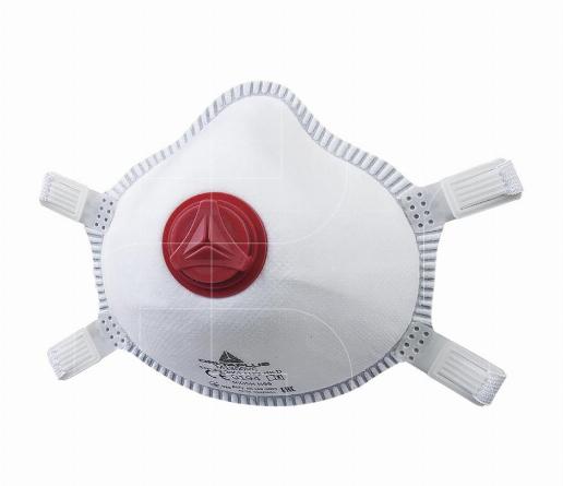 Masker FFP3 met uitademventiel dat bescherming biedt tegen nevels van sterk giftige vaste stoffen en vloeistoffen.