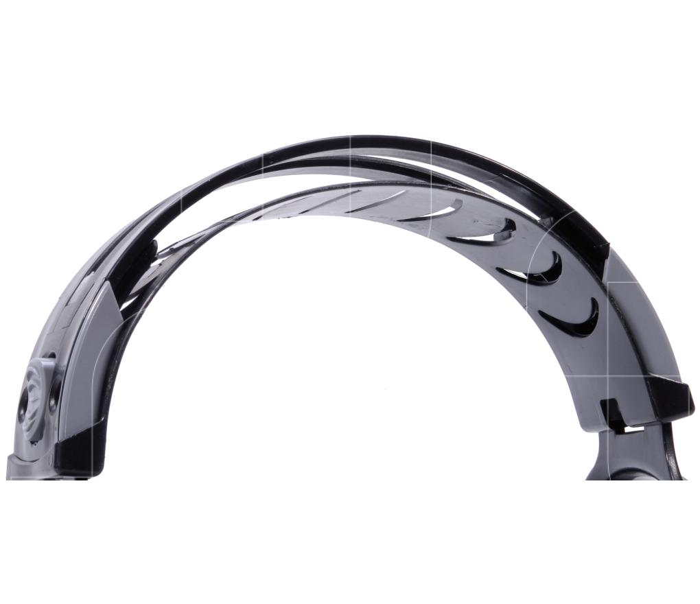 - Dubbele beugel, plastiek (POM), regelbaar in de hoogte, met soepele en verluchte versterking voor een beter comfort.