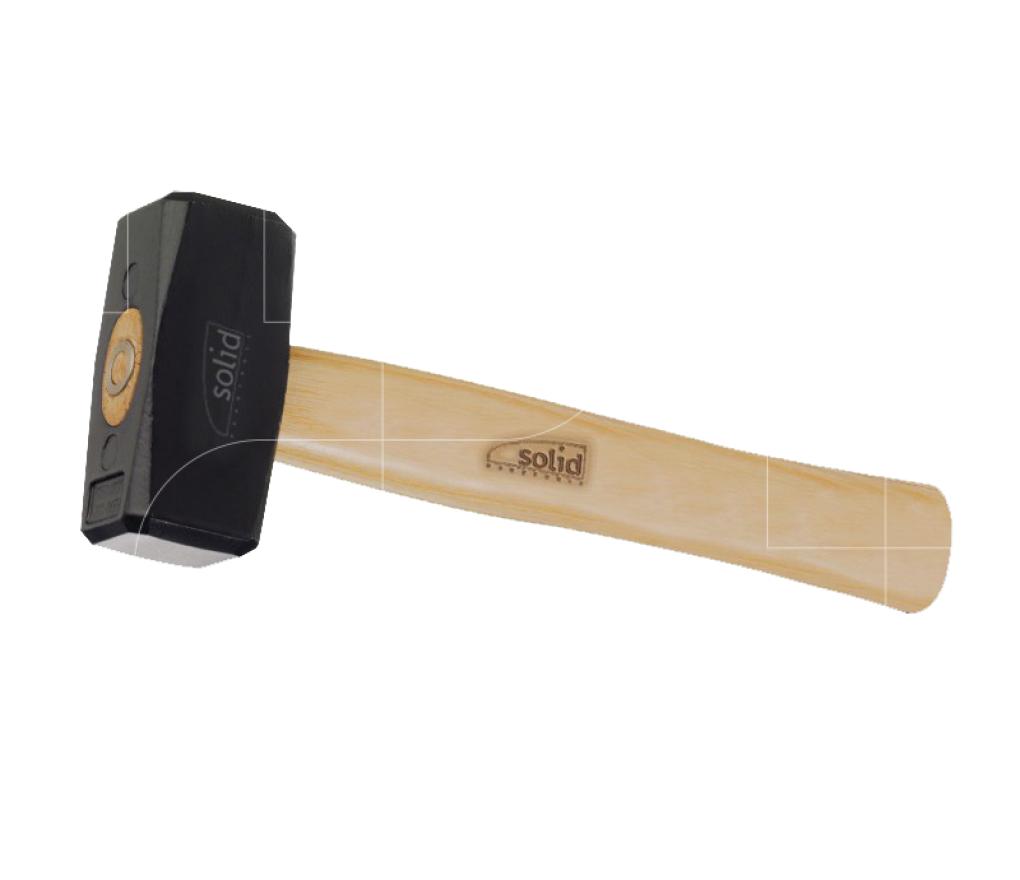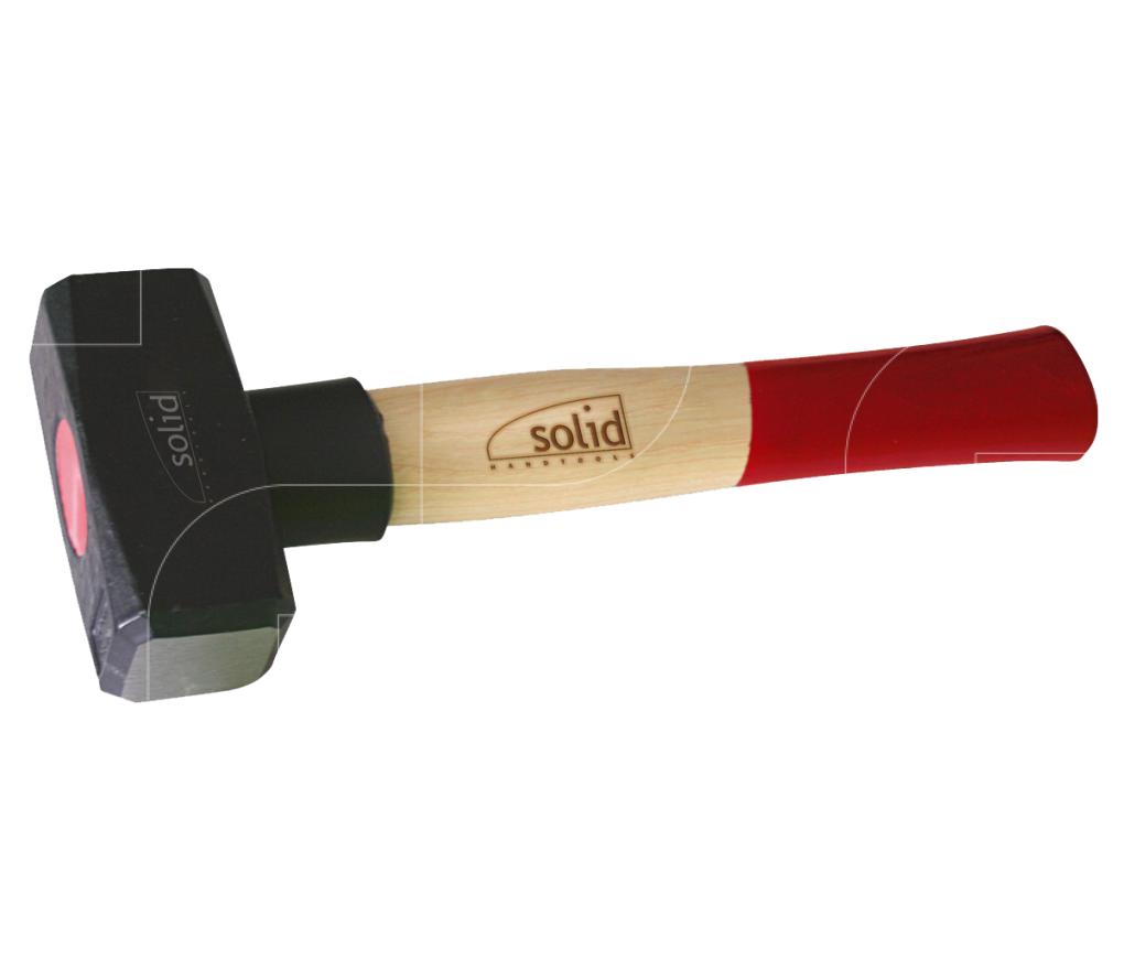 Moker met houten steel en beschermhuls in staal DIN 6475 is een zware hamer met een gewicht van 1000 gram.