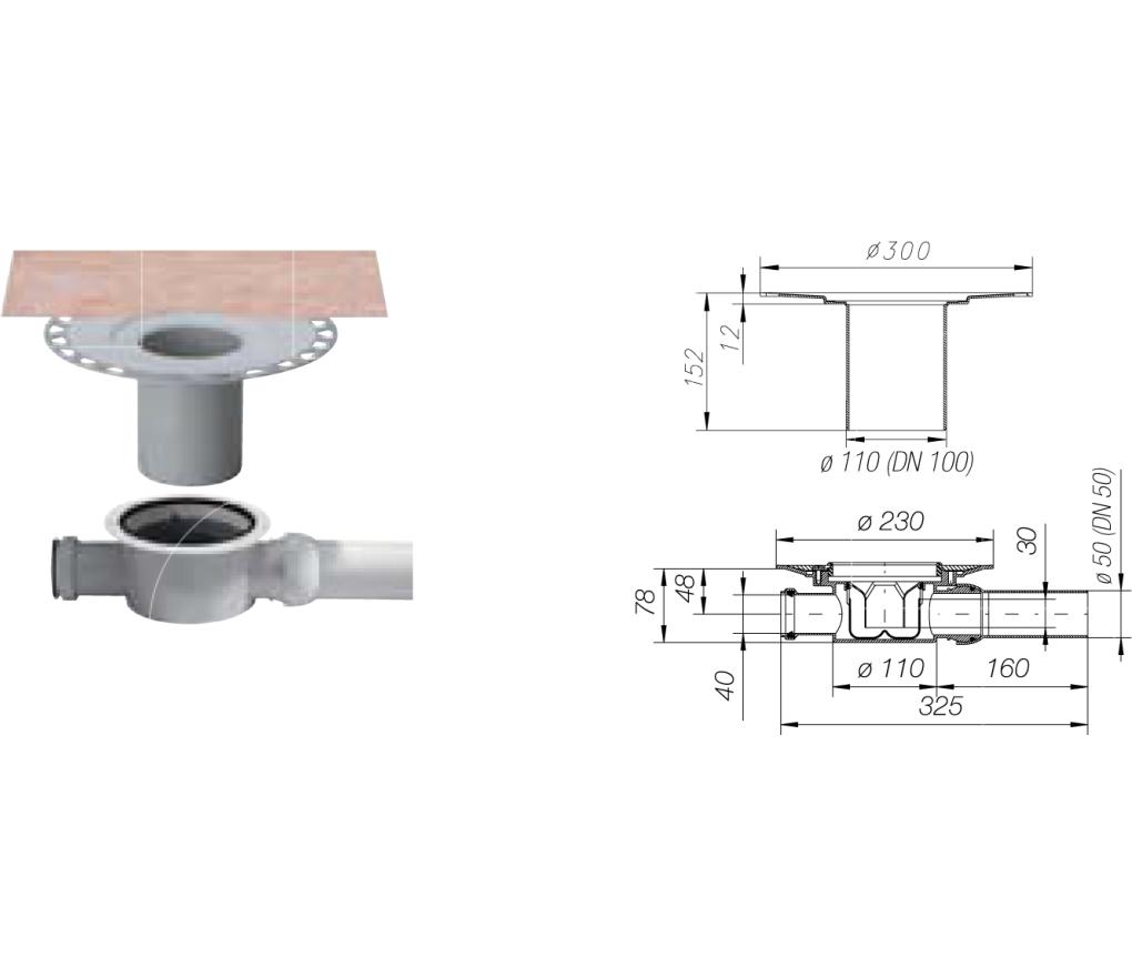 Schlüter-KERDI-DRAIN Ablauf H DN50 (KDBH50GV)