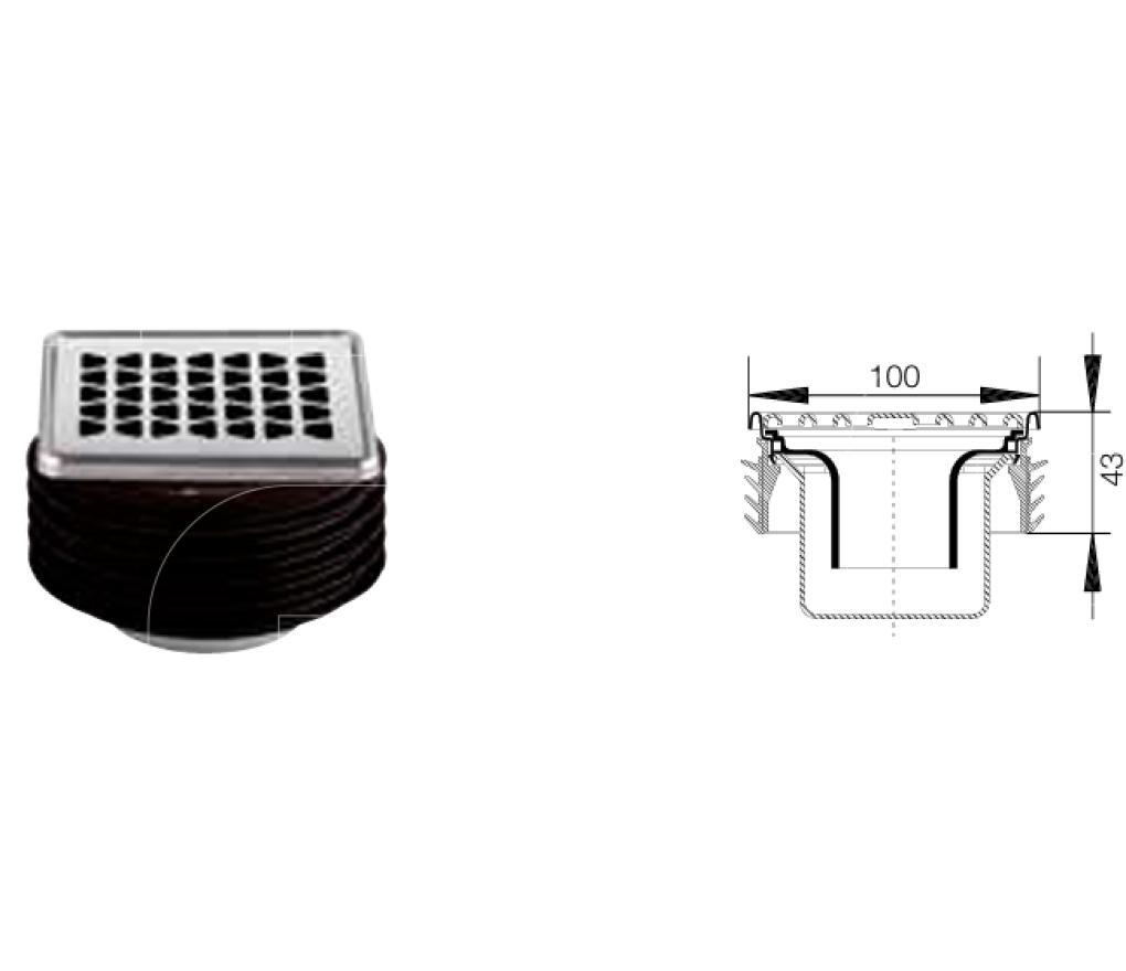 Rooster-/frameset incl. stankafsluiter design 2, roestvast staal geborsteld 10 x 10 cm