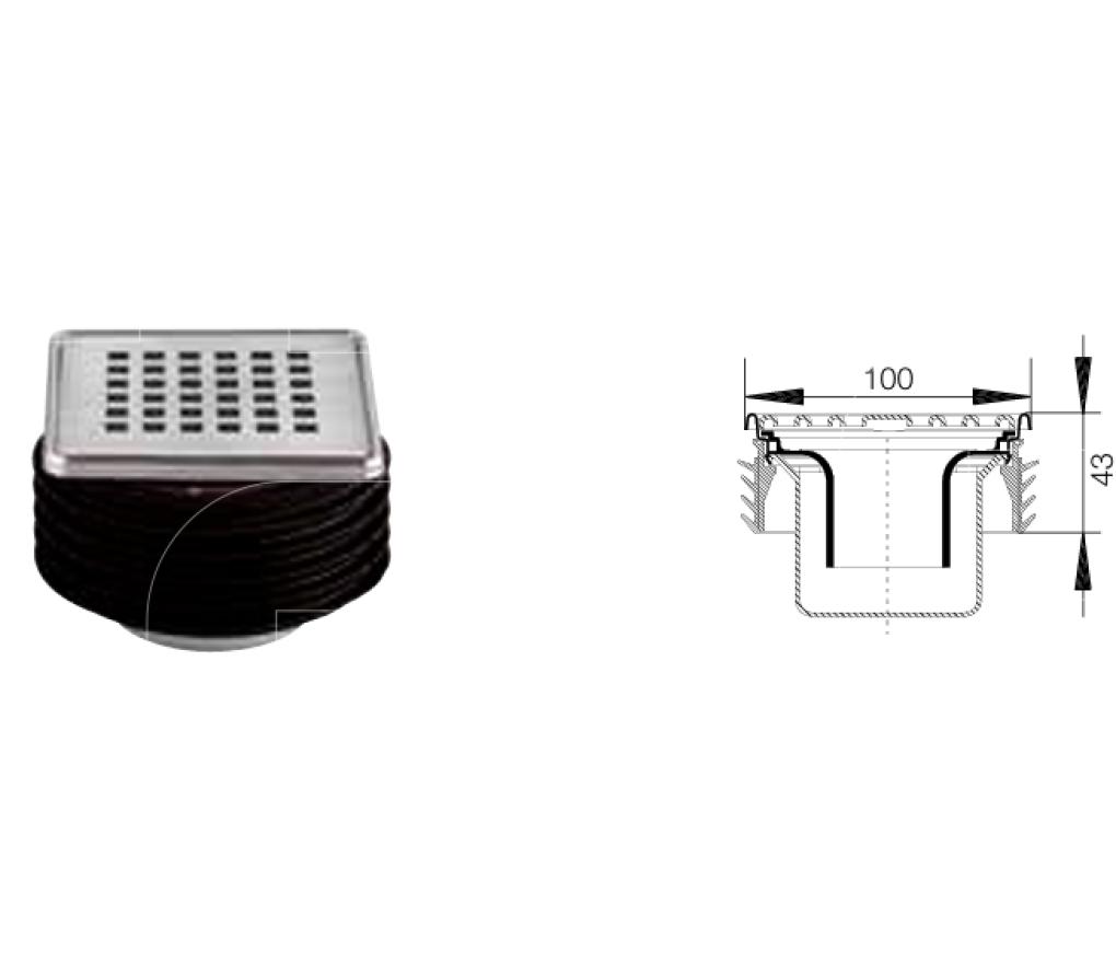 Rooster-/frameset incl. stankafsluiter design 3, roestvast staal geborsteld 10 x 10 cm