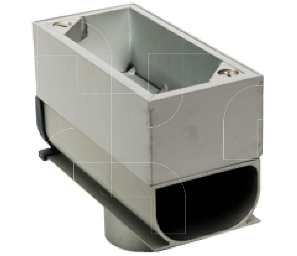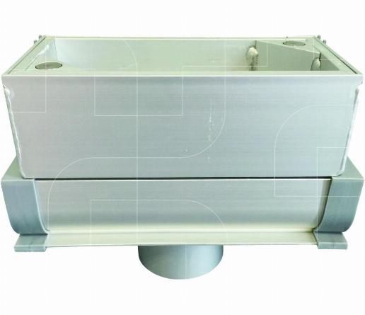 In het verticaal inspectieluik is een onderaan het onderstuk een afvoeraansluiting voorzien voor een koppeling met een buis van 75mm.