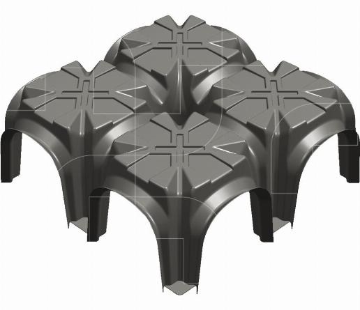 - Bijzondere vorm (matrix van kleine betonnen kolommen) van de bekistingselementen zorgt voor een verhoogde draagkracht van de fundering