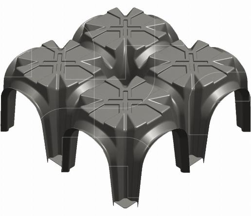 - Bijzondere vorm (matrix van kleine betonnen kolommen) van de bekistingselementen zorgt voor een verhoogde draagkracht van de fundering