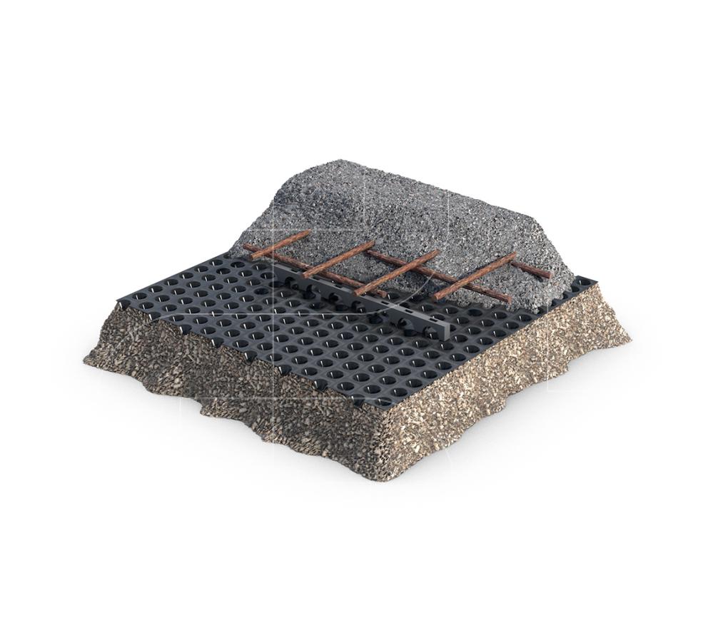- Zorgt er voor dat cement in de betonplaat blijft en niet in de ondergrond wegvloeit