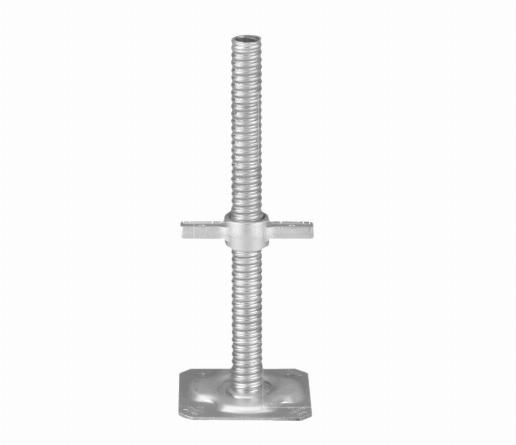 Stalen spindel voor de basis van de gevelsteiger, door de voetplaat en de verstelbare spindel kunt de steiger op de juiste hoogte afstellen.