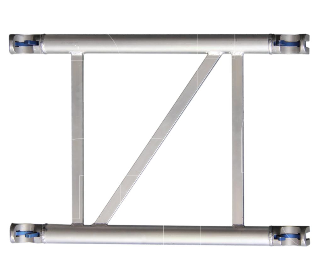 Horizontaalschoren dienen als connectie tussen de verticale opbouwframes 245 cm