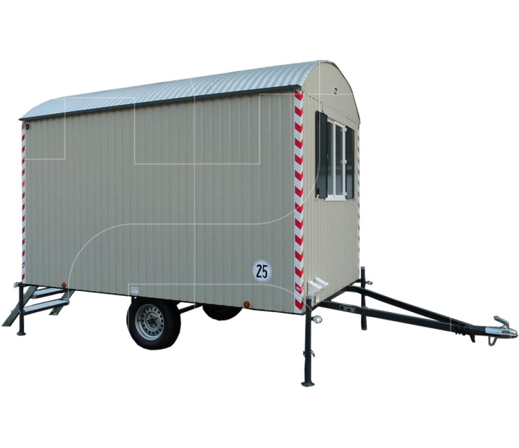 Een kenmerkend aspect van de bouwaanhangwagens type S is het zelfdragende dak van gebogen golfplaat wat een ononderbroken volledige isolatie van het dak mogelijk maakt.