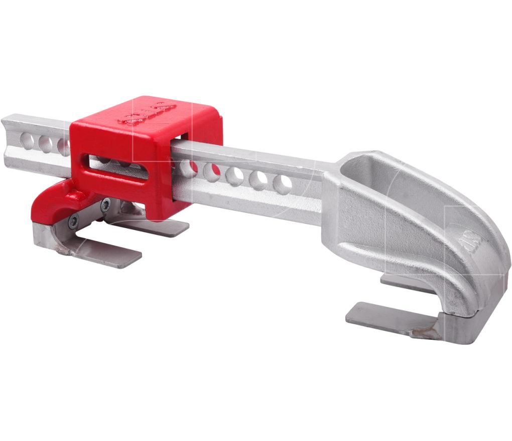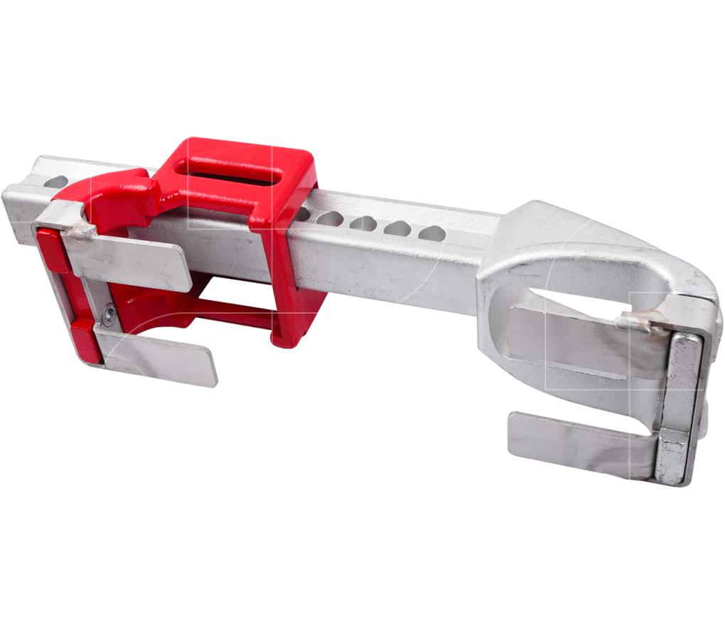Het roodgekleurde slothuis is variabel instelbaar dankzij de vele borgingsgaten voor het hangslot, hierdoor is het containerslot verstelbaar van 230 mm tot aan 470 mm, waardoor het op elke standaard container en trailer past.