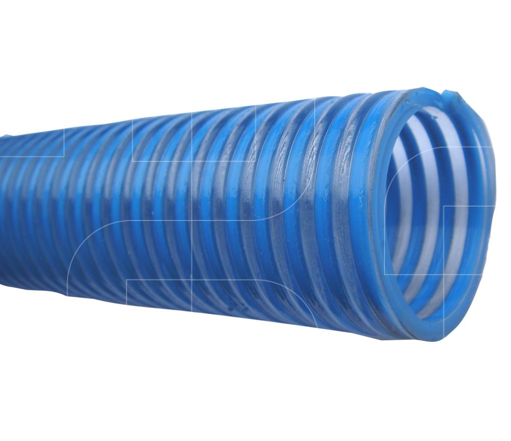 - Materiaal: soepele doorzichtige pvc, verstevigd met een blauwe harde pvc spiraal met een gladde binnenwand