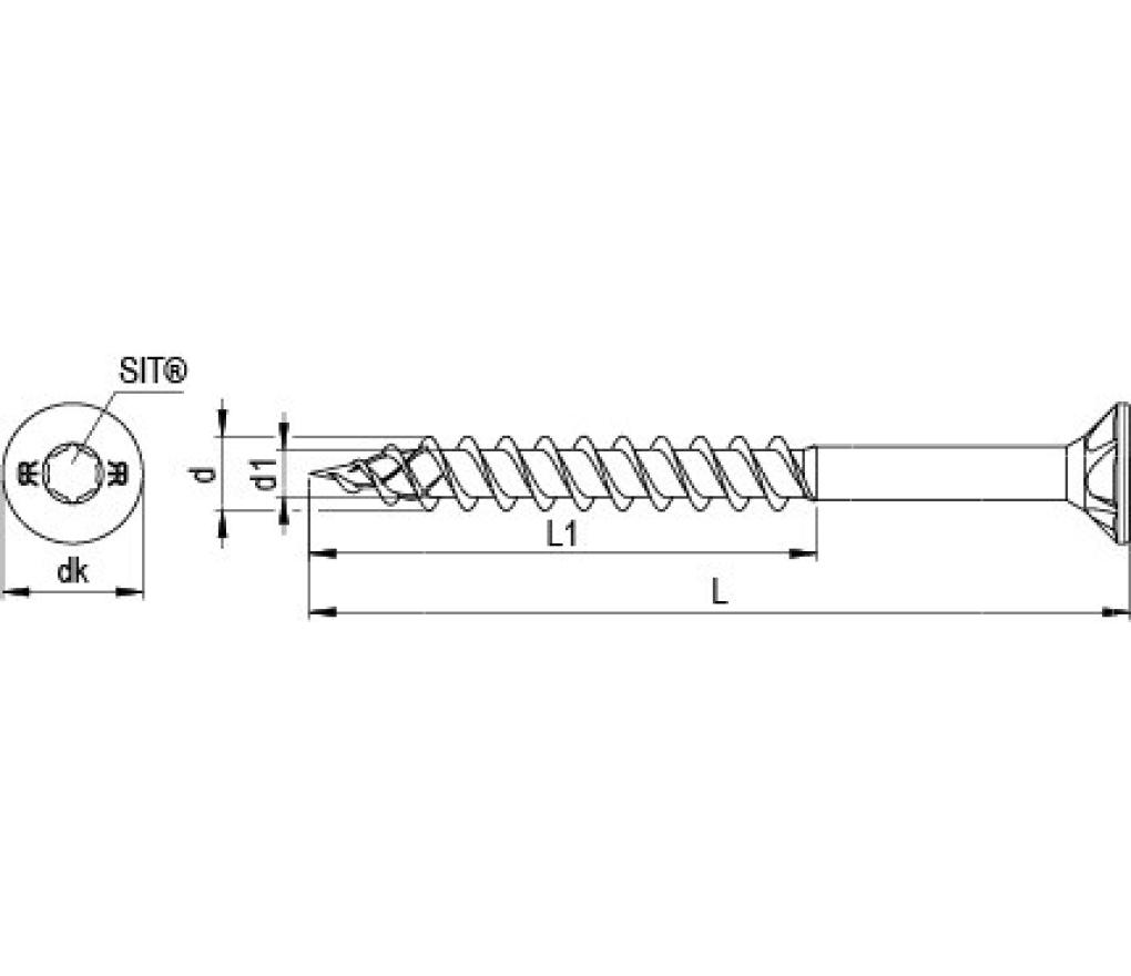 DNS Plus Multiversele houtschroef met kerfpunt, snijtanden, dubbele draad en freesribben 6,0 X 120