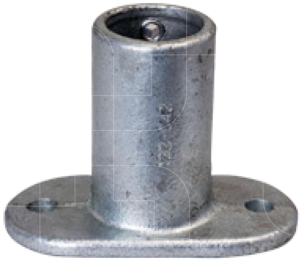 Buiskoppeling met een hoge voetplaat en ovale flens van Ø 48,3 mm is geschikt voor het bevestigen van constructies aan de muur of vloer.