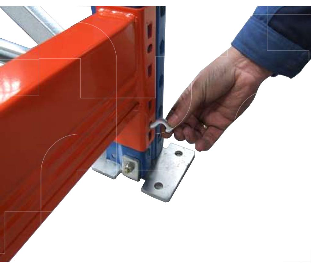 Onderaan de staander worden voetplaten (150x118 of 150x138 mm) gemonteerd voor een stabiele verankering in de betonvloer met ankerbouten (M12x110).