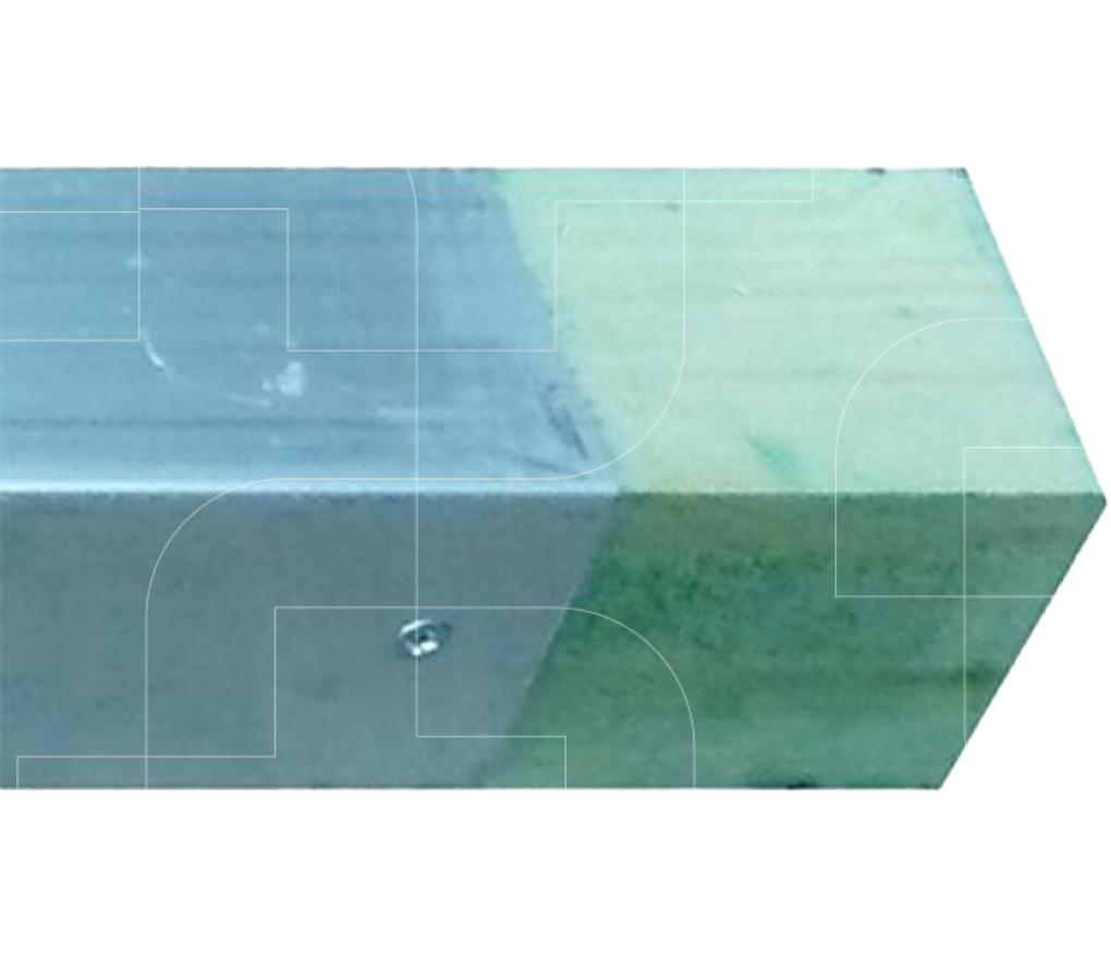 Aluminium metsersprofiel met hout binnenin, gefreesd, aan elke zijde 1 sleuf.