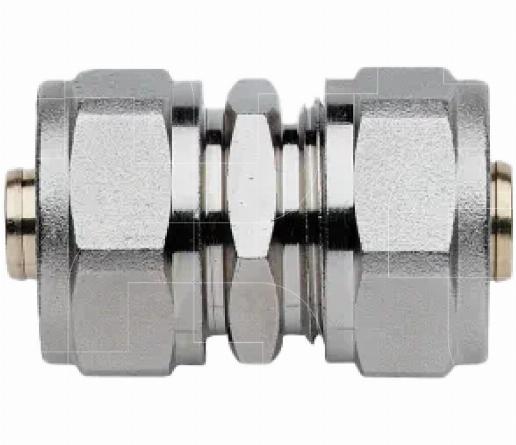 BEKOTEC-THERM-KU is een dubbele schroefkoppeling met klemring van vernikkeld messing voor het verbinden van de verwarmingsbuizen.