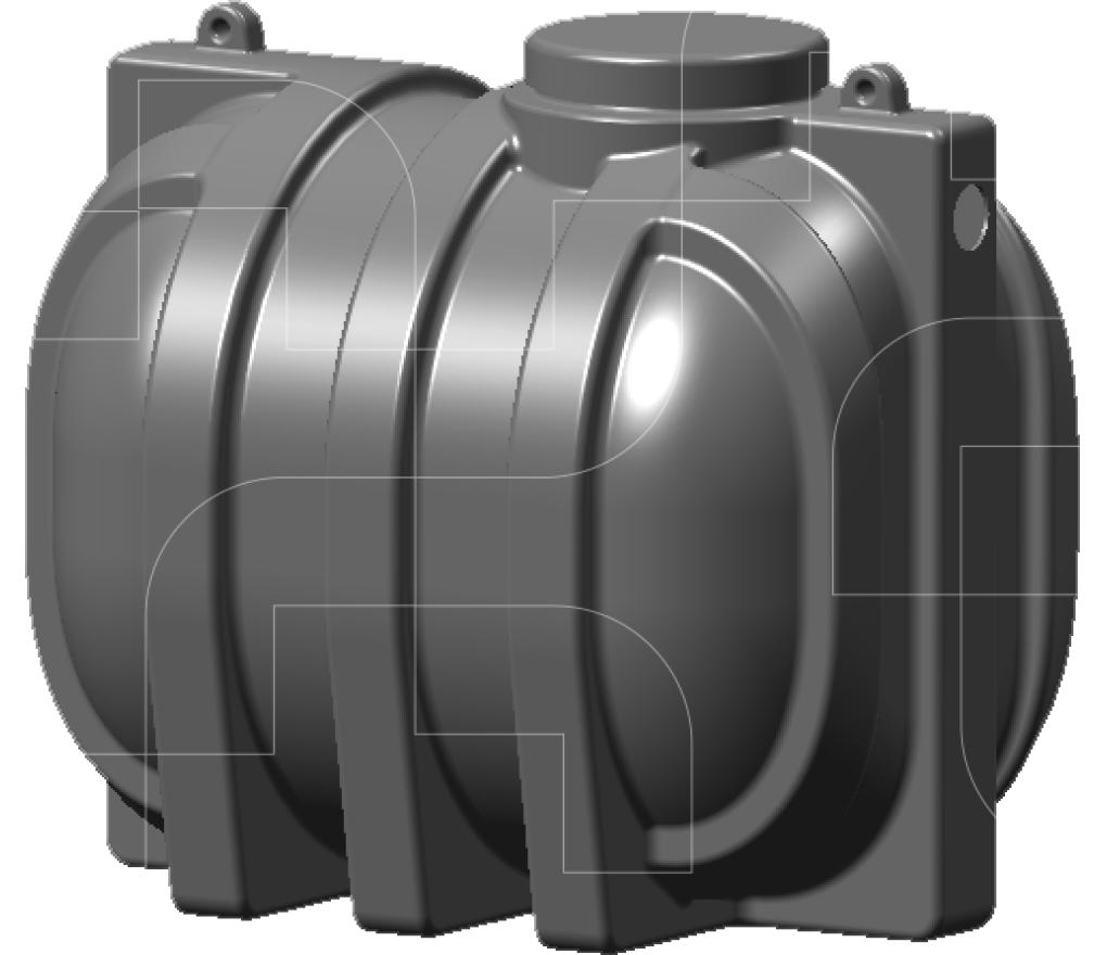 Technische ficheCilindrische kunststof tank voor ondergrondse opslag van regenwater 2500L (BP)