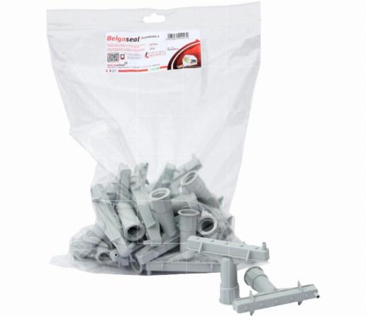 Belgaseal DISPENSER A is een multifunctioneel T-vormig dispenserstuk dat gebruikt wordt in combinatie met Belgaseal DISPENSER B om in één beweging de Belgaseal 600 luchtdichtingslijm volvlaks aan te brengen.