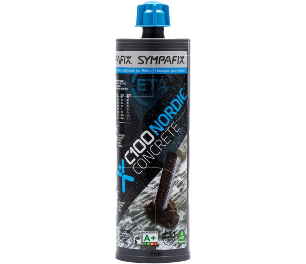 C100 Nordic injectiemortel met ETA goedkeuring voor de trek- en drukzone van beton, toepasbaar vanaf -20°C tot +20°C. Tevens ETA-goedgekeurd voor gebruik in massief en geperforeerd (kalkzand)steen en metselwerk en voorzien van brandgoedkeuring.