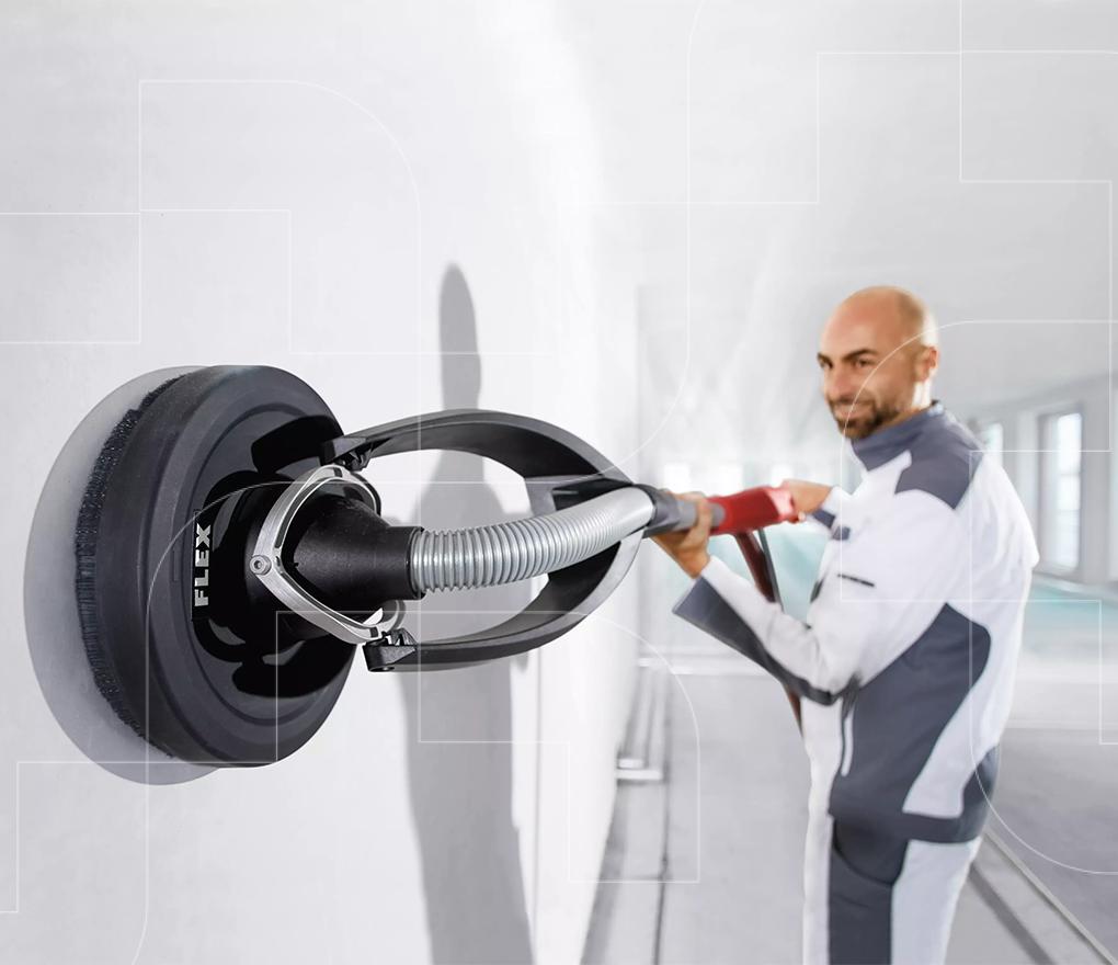 Zeer handige, lichte Giraffe schuurmachine voor wand en plafond met optimaal bedieningscomfort maakt ergonomische werkzaamheden zonder vermoeidheid mogelijk.