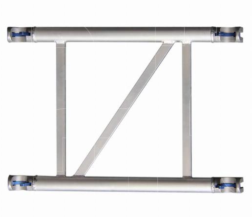 Diagonalen dienen als connectie tussen de verticale opbouwframes 245 cm