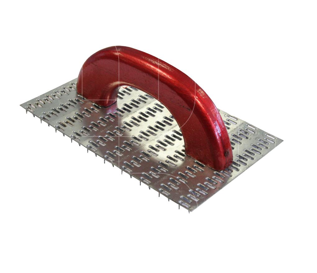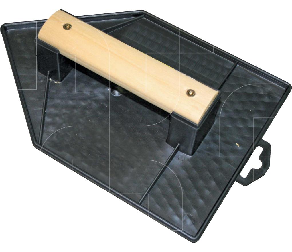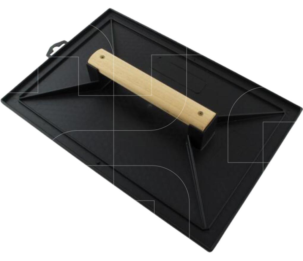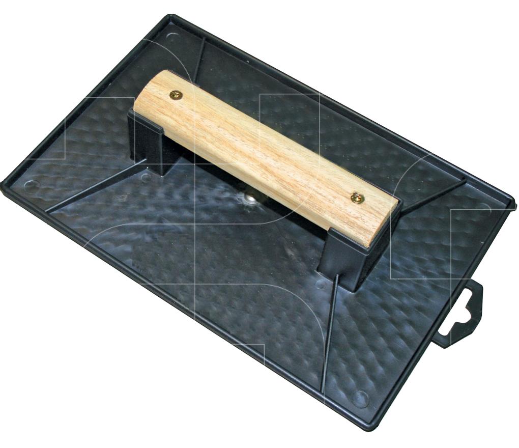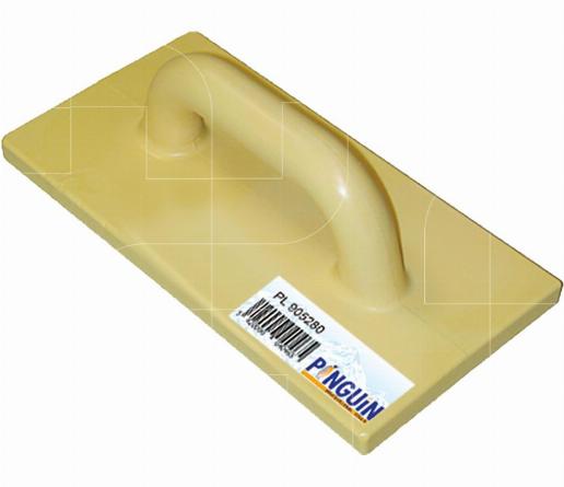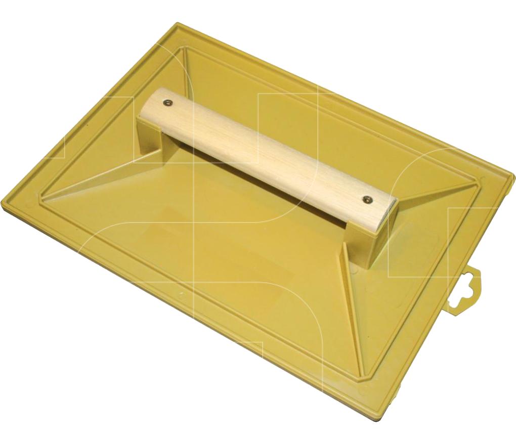 Schuurbord polyurethaan geel met handgreep en rechthoekige vorm voor het afwerken en gladstrijken van pleister- en stucwerk.