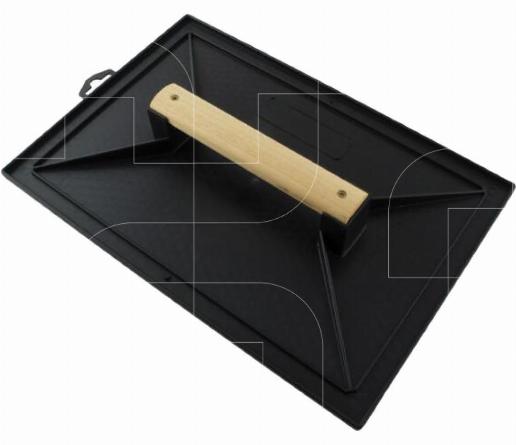 Schuurbord polystyreen zwart met houten handgreep en rechthoekige vorm voor het afwerken en gladstrijken van pleister- en stucwerk.
