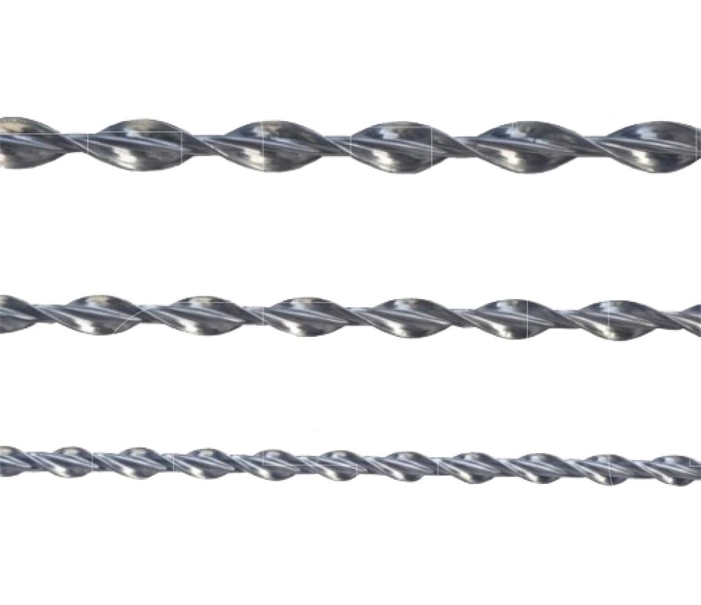Spiraalvormige roestvaststalen wapeningsstaaf die wordt gebruikt voor het versterken en stabiliseren van metselwerk in oude bouwwerken, nieuwbouw en renovatieprojecten.