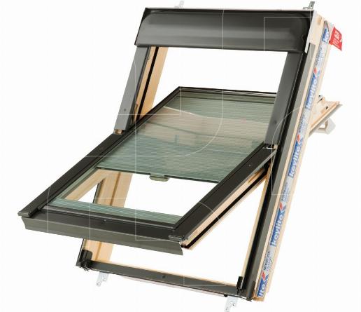 - Veelzijdig dakraam met centrale as, geschikt voor enkele of meervoudige toepassingen in ieder dak met een helling tussen de 15° - 90°