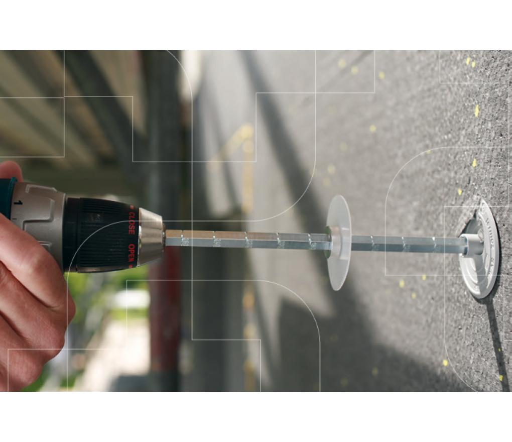De Termoz SV ecotwist is zeer geschikt voor het bevestigen van drukbestendig isolatiemateriaal met een dikte van 100 tot 400 mm zoals polystyreen platen of platen van homogene minerale wol in beton, volle en geperforeerde baksteen, open lichtbeton en cellenbeton.