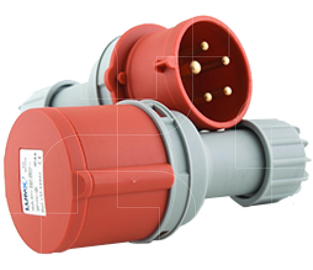 Deze stekker en koppelstekker voldoen aan IP44. De aansluiting van deze stekker en koppelstekker is 3P+N+A.
