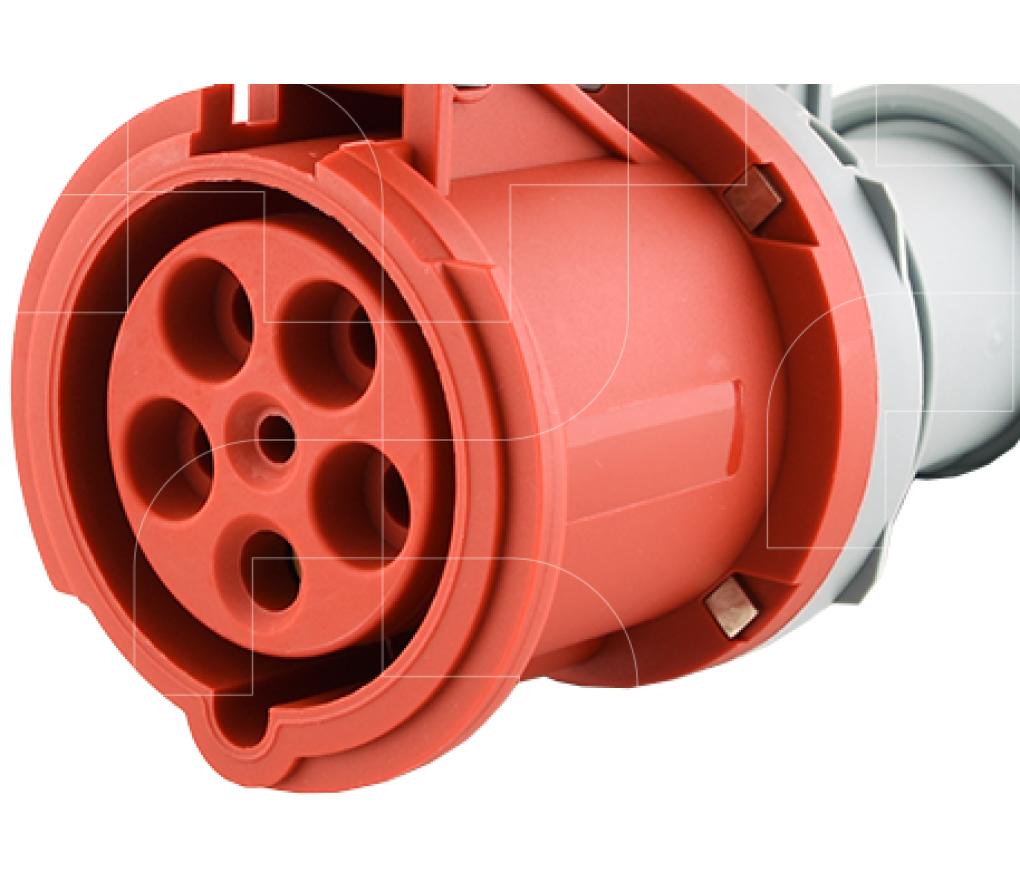 De aansluiting van deze stekker en koppelstekker is 3P+N+A.