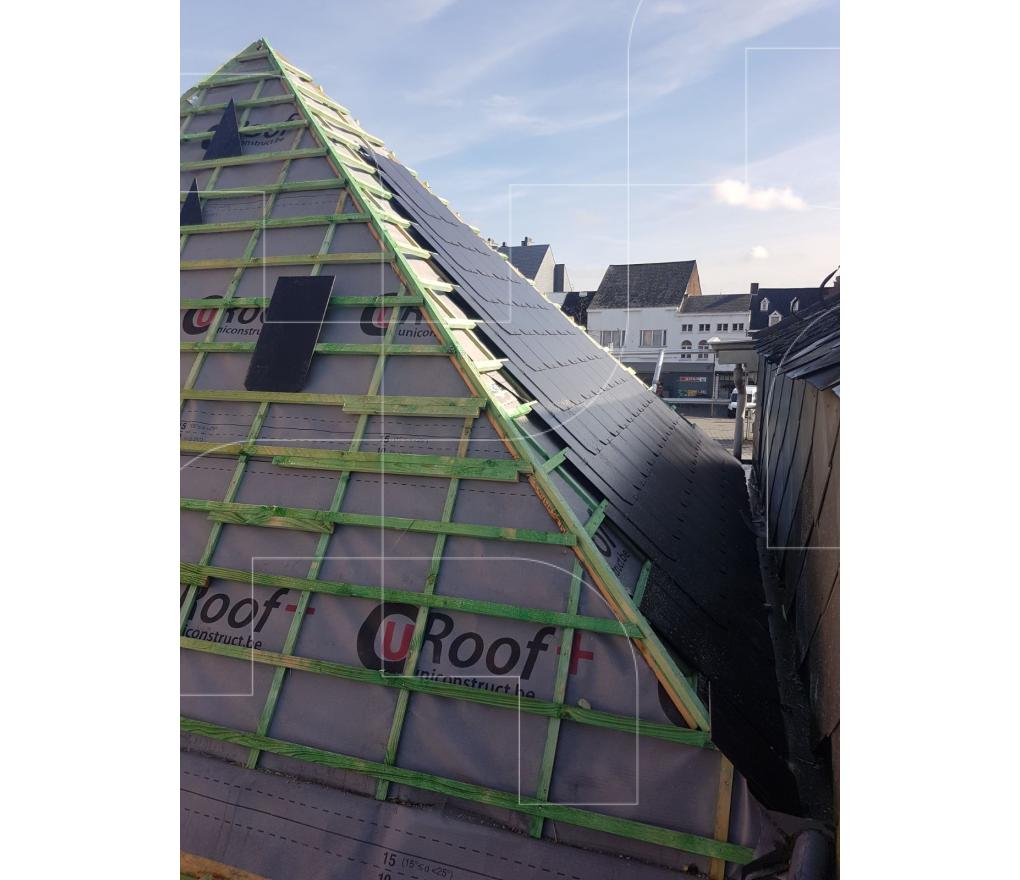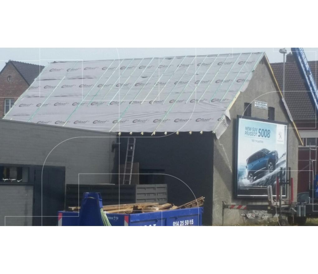 UCRoof+ Bestaat uit een geheel van 4 stevige lagen die een regendicht en ademend membraan vormen, opgebouwd uit 2 lagen gesponnen polypropyleen, een microporeuze film en wapeningsnet.