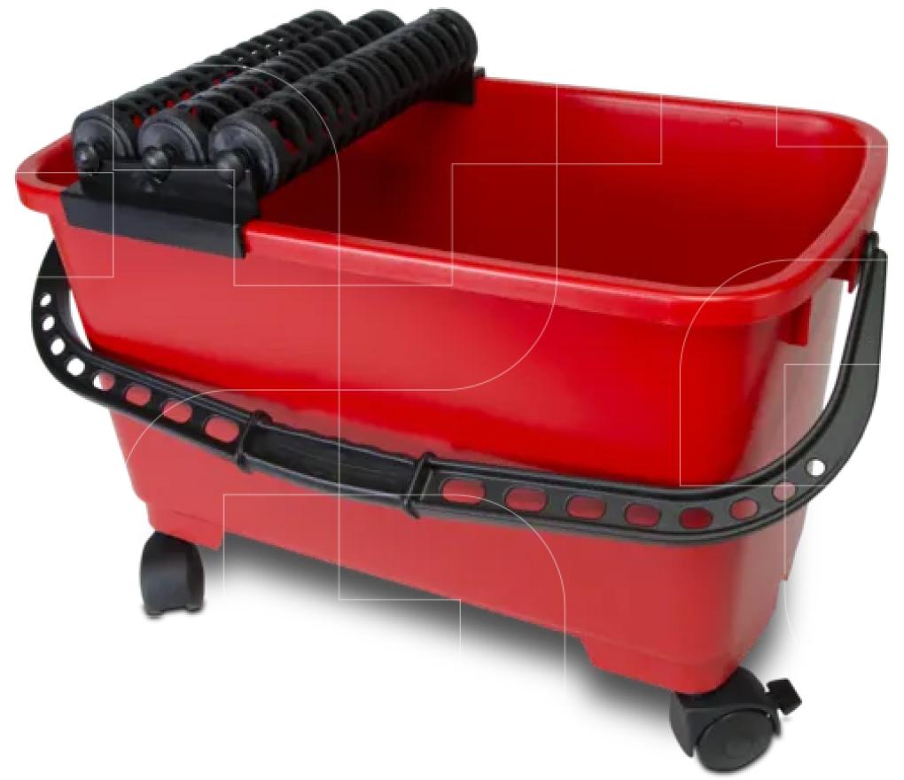 - Uitgerust met 3 gegroefde uitwringrollers om het water goed te kunnen afvoeren en om zo de sponzen een optimaal vochtgehalte te geven