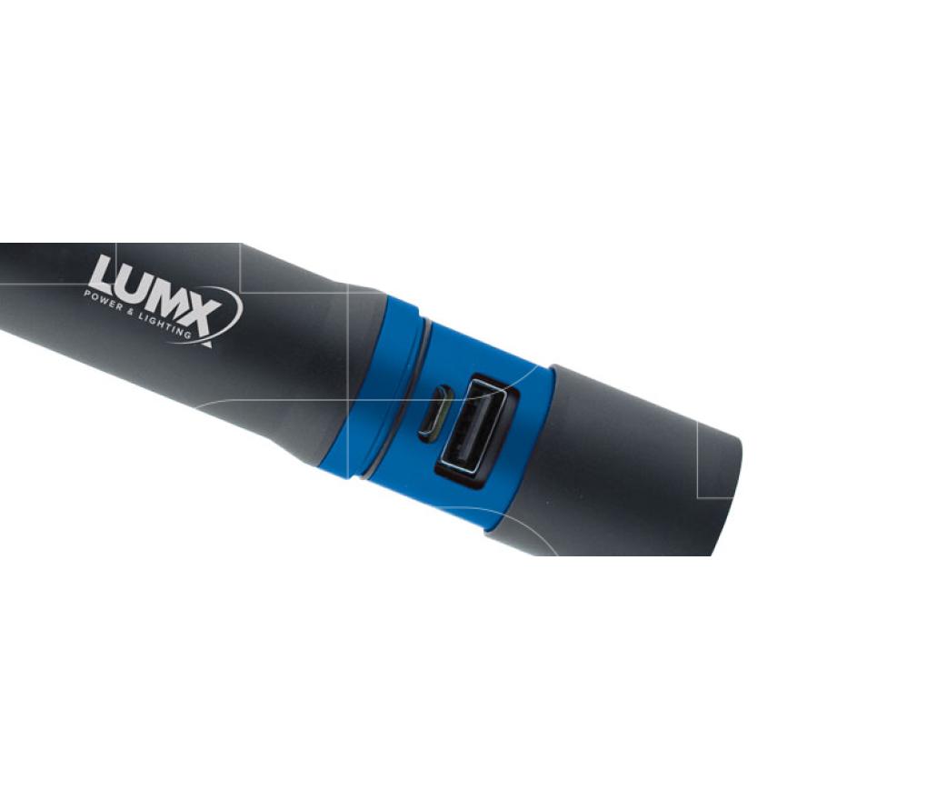 LED T-1000 tactische zaklamp met 5 lichtstanden, powerbank functie en USB-oplaadbaarheid.