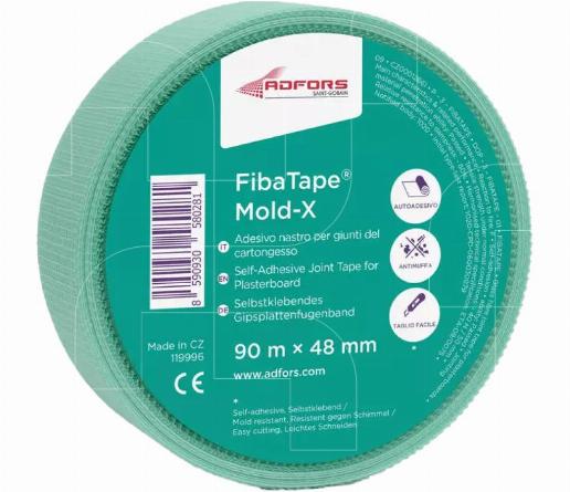 Dankzij de antimicrobiële coating is FibaTape Mold-X ideaal voor gebruik met schimmelwerende en papierloze droge muren. Het biedt ook meer bescherming dan andere gipstapes in vochtige omgevingen. Het open glasvezelnet voorkomt blaasjes en bellen, terwijl het ook de verbindingssterkte en structurele integriteit verhoogt.