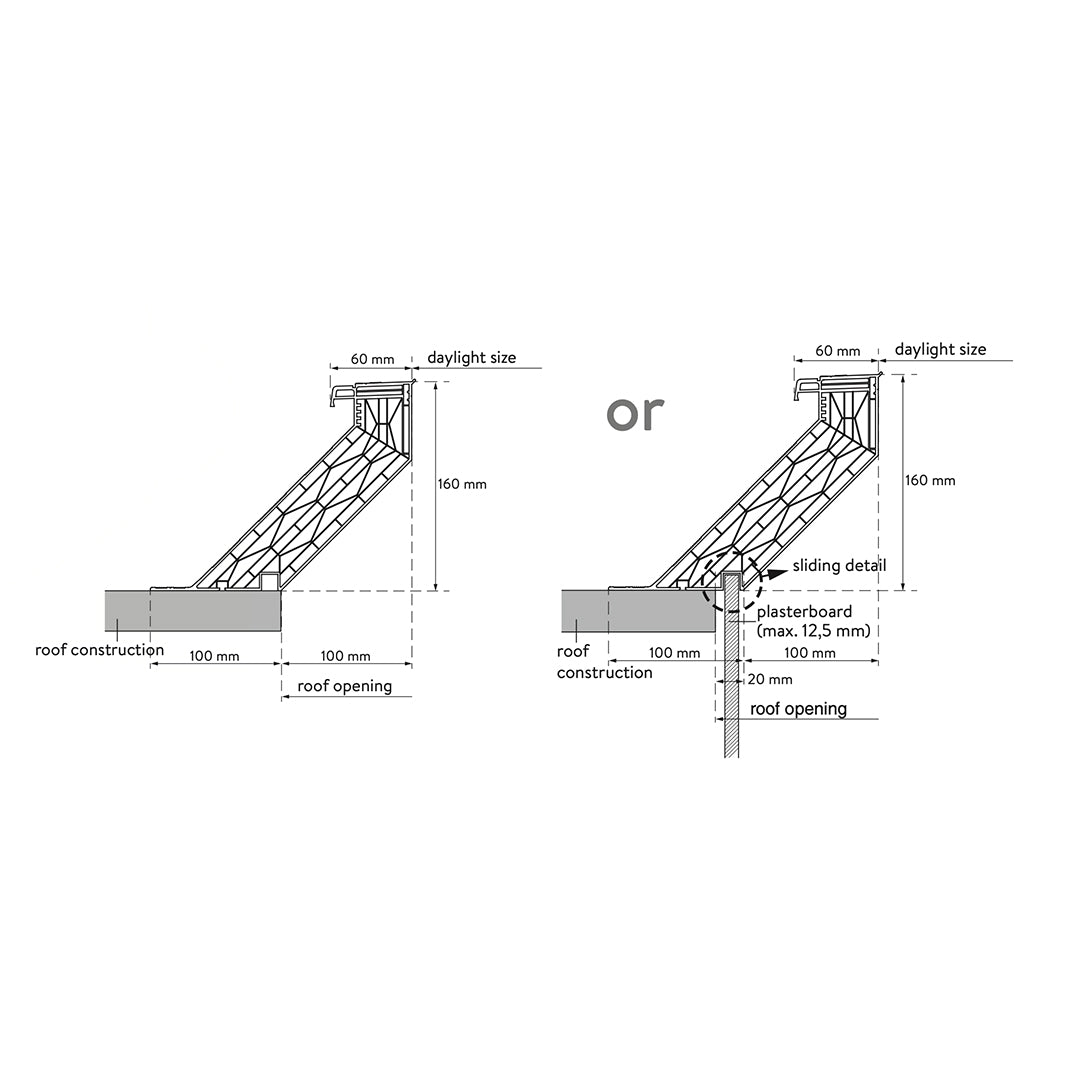 - Dakopening (meerafstand t.o.v. daglichtmaat)