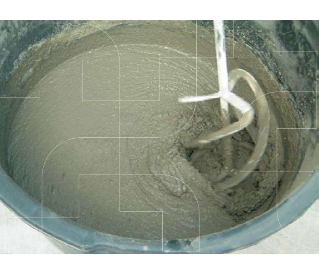 - Men bekomt door eenvoudige toevoeging van water een krimp gecompenseerde gietmortel met een hoge eindweerstand die uitstekend hecht op beton, mortel en staal
