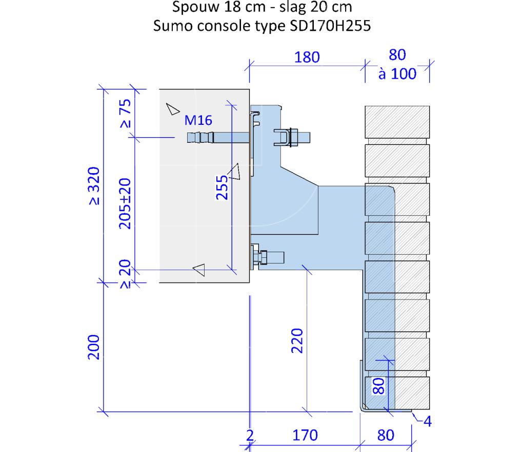 Scaldex SUMO geveldrager L=3000mm-5c (console 170) (incl.regel-/vulplaten/keilb.)