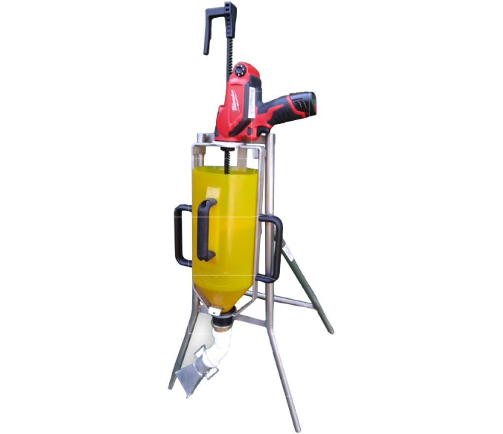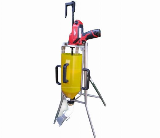 Om gedoseerd mortel op te brengen is de drukschijf voorzien van een accu-aangedreven machine, welke op een variabele snelheid kan worden ingesteld.