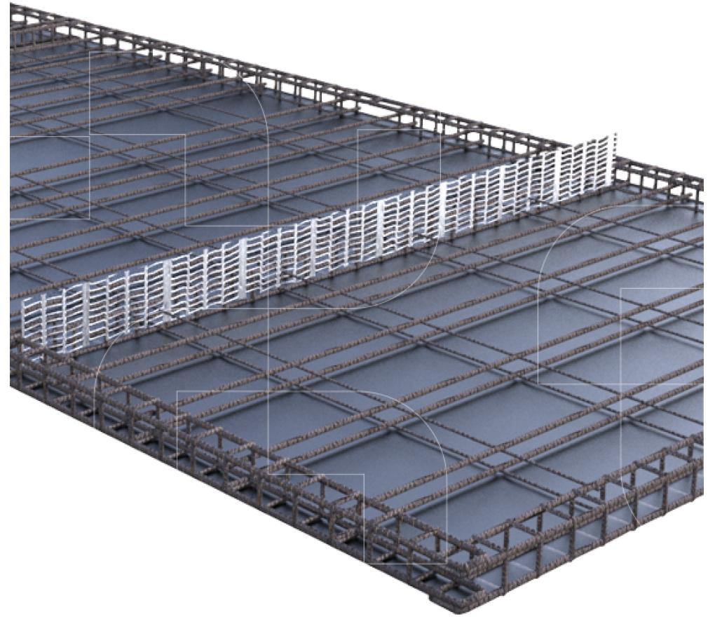 Panelen uit gegalvaniseerd strekmetaal voor het in situ creëren van een hernemingsvoeg of stortonderbrekingen waar geen waterkering of voegband nodig is.